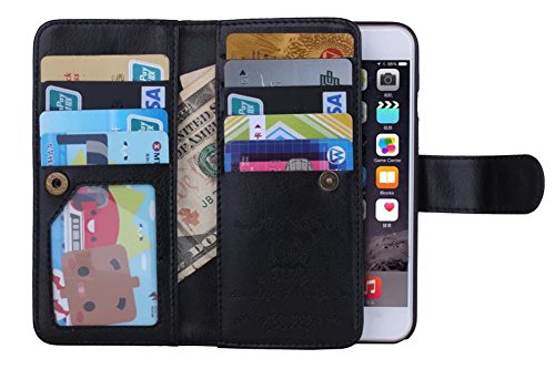 -. Feature : Multi-functional wallet case fits iPhone 6 / 6s / Durable 2 in one designed combo, with 9 cards slots, include window ID, carry around your ID and credit cards for easy access. Provide comprehensive protection with the snap button, which ensures all your personal staff stay inside securely / Soft inner skin cover to hold the device, shelter your phone from grease, scratches, shocks, abrasions, dust and wear with this unique case / Detachable magnetic inner case and hand strap for carrying convenient during work,travel or outside activities / Precisely engineered to preserve full use of volume buttons, charger, camera, microphone, headphone jack, and all other ports. Allows charging without removing the case