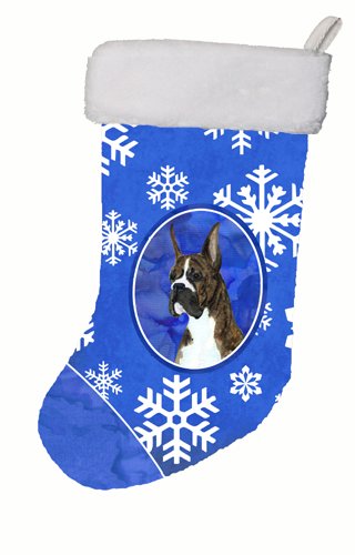 Caroline's Treasures SS4646-CS Boxer Winter Snowflakes Christmas Stocking, 11 x 18", Multicolor