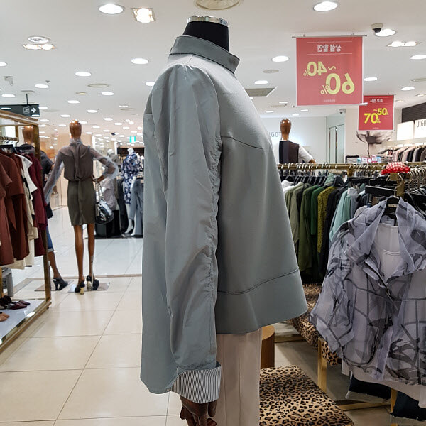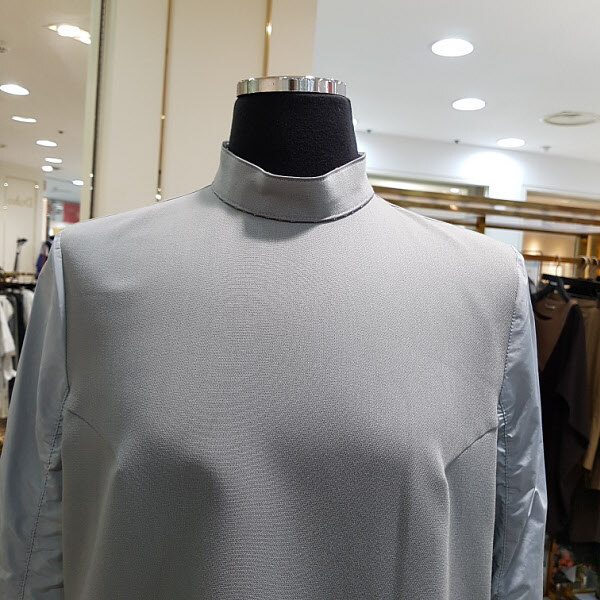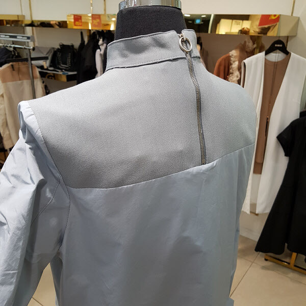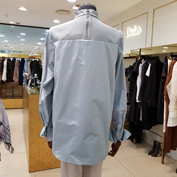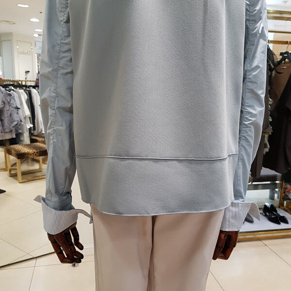 셔츠형 디자인에 티셔츠느낌을 연출한 스타일입니다. 언발라인에 셔츠형 소매가 멋스런 디자인입니다.