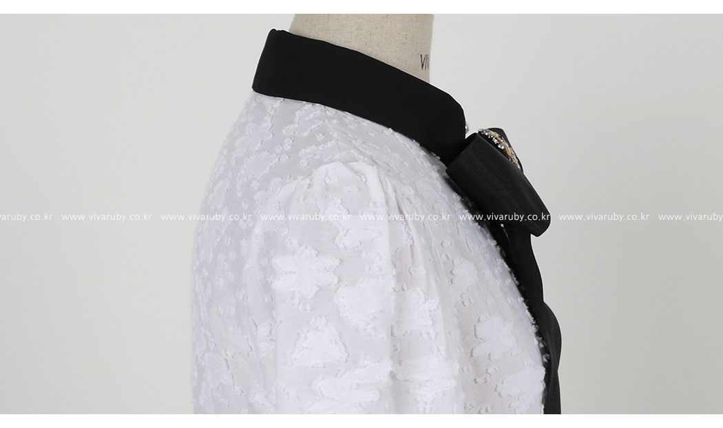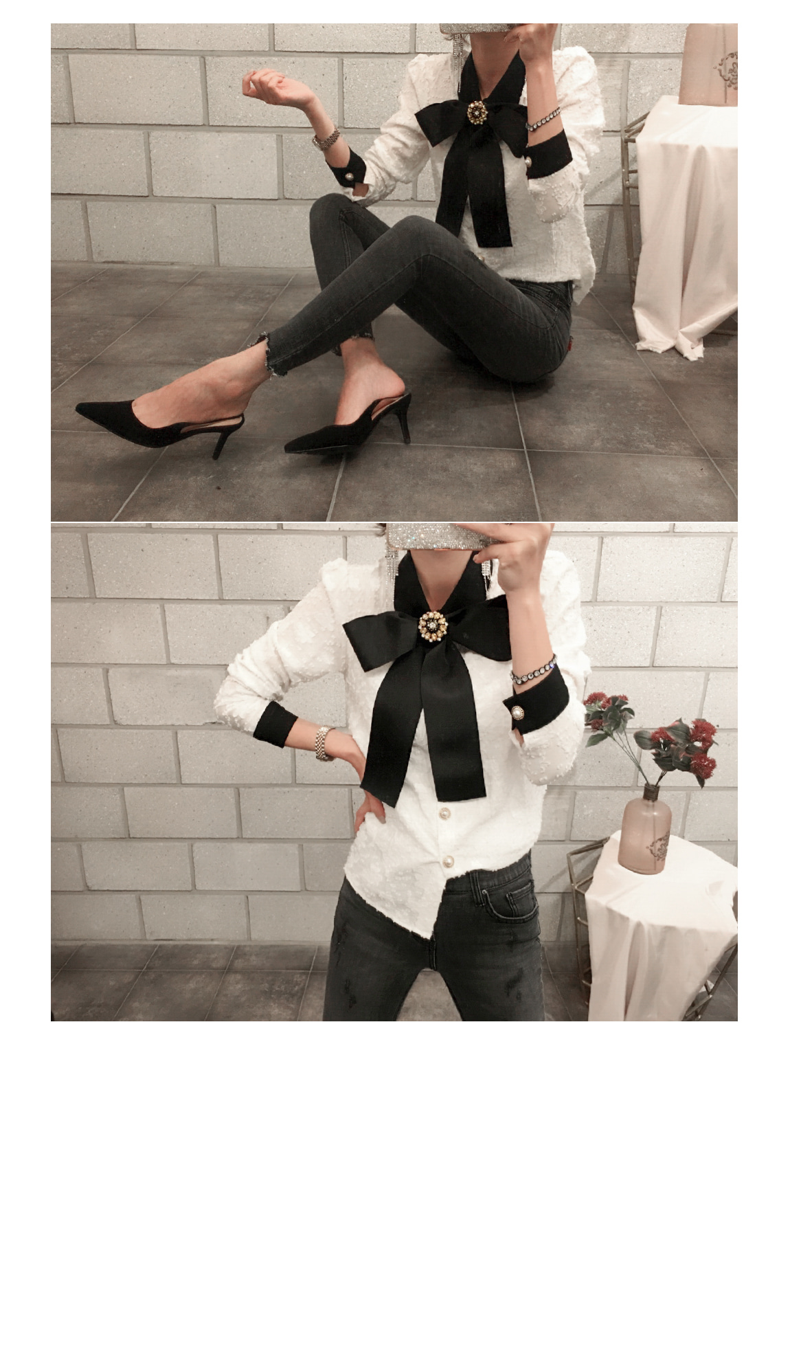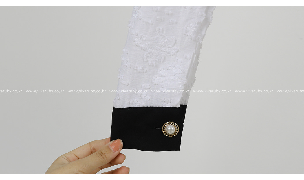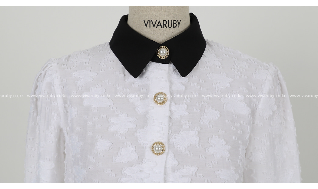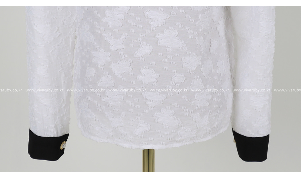きれいなカラー配色と立体的なウォンダンガムにフェミニンなブラウスです