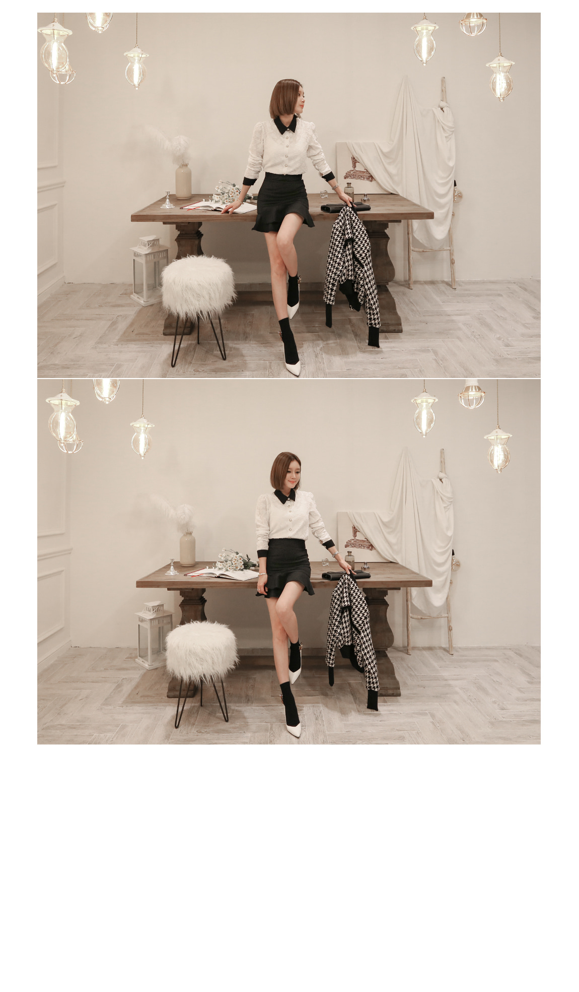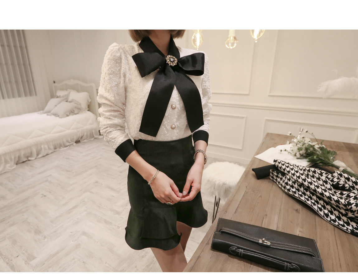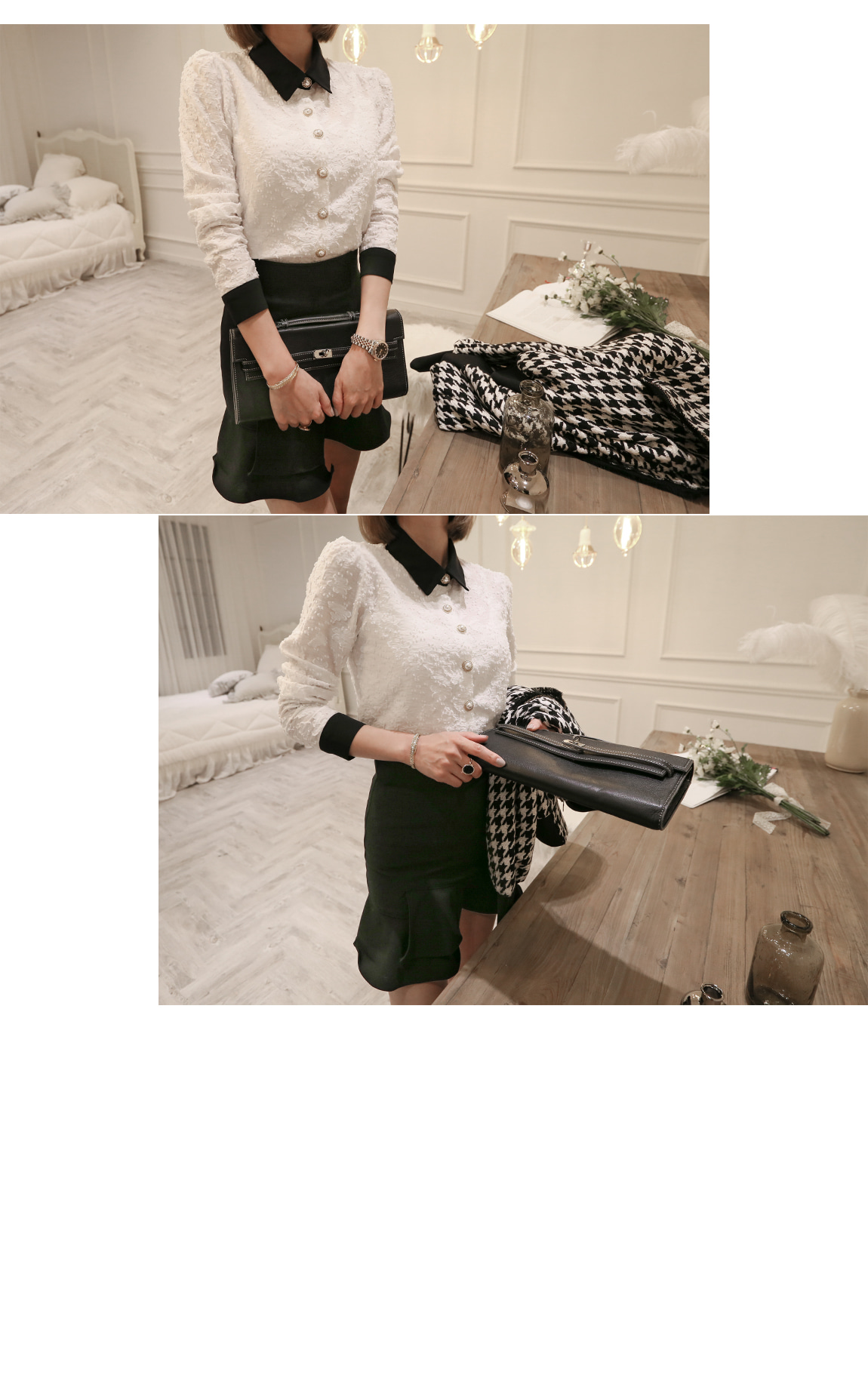 きれいなカラー配色と立体的なウォンダンガムにフェミニンなブラウスです