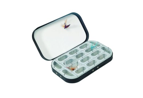 -. Title : Okuma Traditional Black Aluminum 16 Window Fly Box with Foam