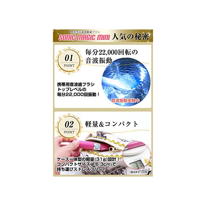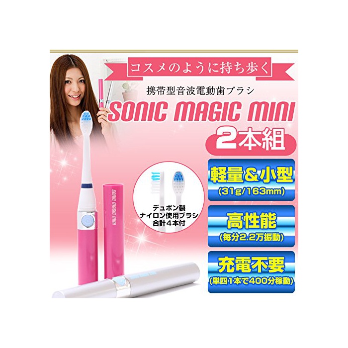 원본상품명: ソニックマジックミニ 2本セット ポケットするオラルケア 用替えブラシ付 携用音波式電動ブラシ
