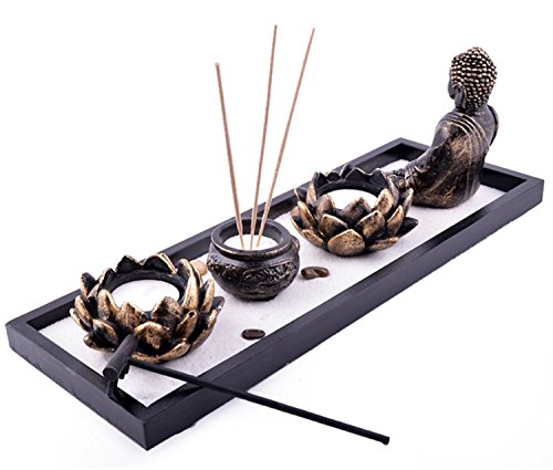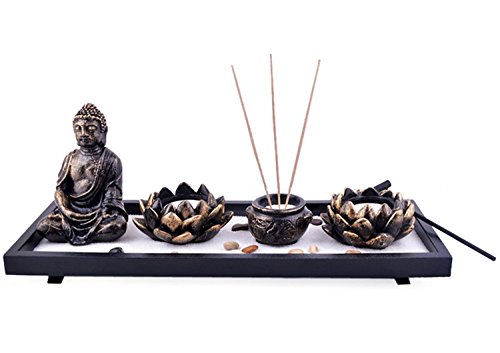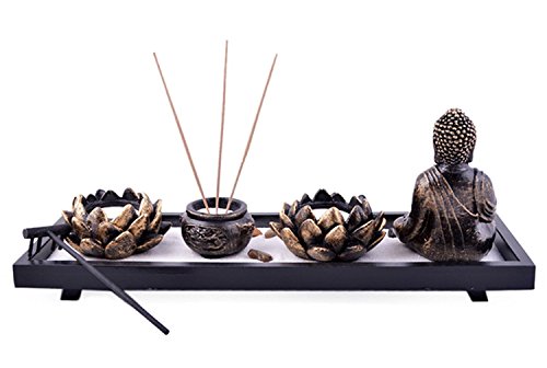 Feng Shui Zen Garden Sand Buddha Rocks Lotus Incense Burner W Fengshuisale Red String Bracelet Sku:H1023