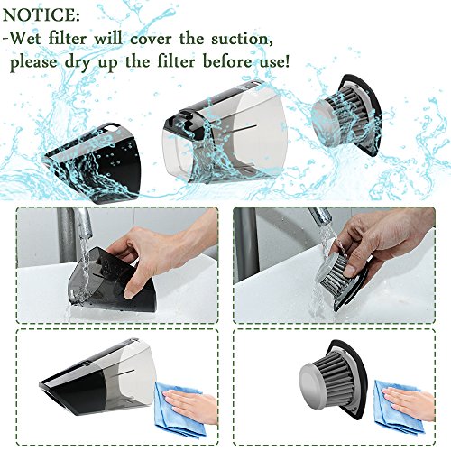 【DURABLE STAINLESS STEEL FILTER】 LOLLDEAL rechargeable Dust Buster has a removable and washable stainless steel filter, (20 times that of normal Hepa filter ) enhance the powerful suction, ideal for thorough cleaning.