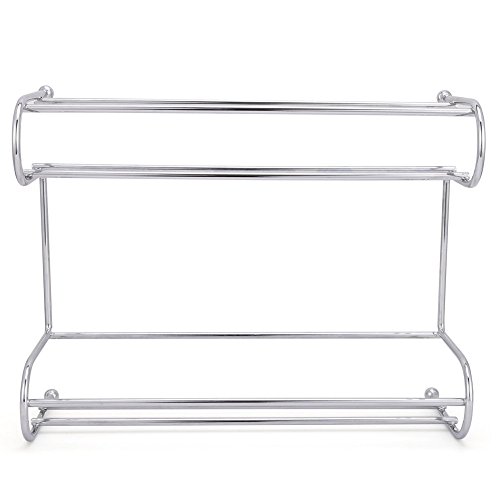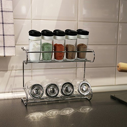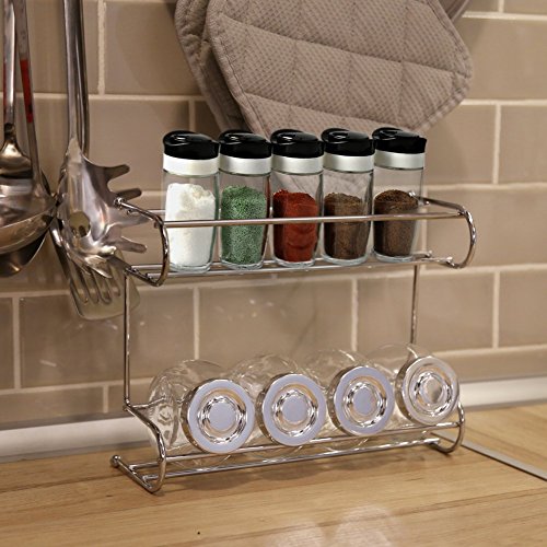 -. Feature : The EZOWare Countertop Stainless Steel 2-Tier Rack offers organized space compatible with the majority of glass or plastic bottles, shakers, jars, and smaller canisters. / Top shelf tier can fit jars up to 1.75 inches in diameter. Wider bottom shelf fits jars up to 2.75 inches in diameter and up to 6 inches in height / Durable & resistant polished stainless steel counter-top design. Simply place it on any flat surface to create easy to access storage. / Attractive stainless steel design can be utilized in any room of the house, including; kitchen, bath room, living room, bedroom, craft room & more. / Perfect to organize & display your spices, snacks, tea, dry goods, condiments, nail polish, medicine bottles, craft supplies, and other smaller items. ( Note: Spice Jars are NOT Included )
