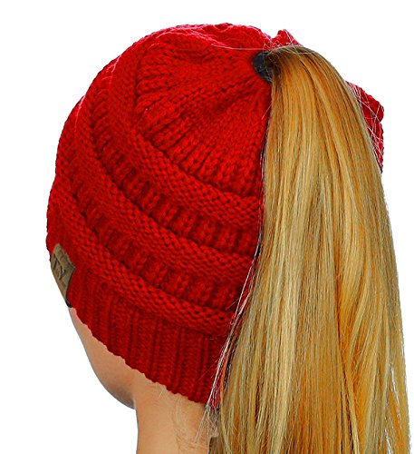 -. Title : Tiiyar ビーニー テール 柔らかい 伸ばされるケーブル ニット取り散らかしたパン 高いポニーテール ビーニー【秋冬春用】