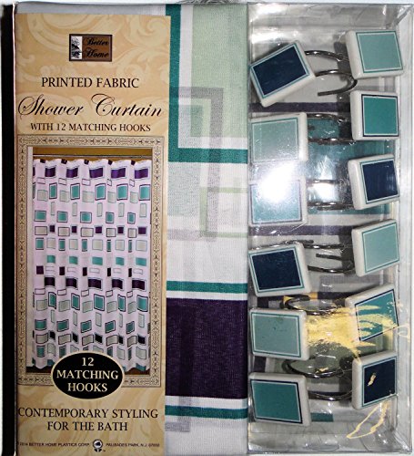 - Includes: Fabric Shower Curtain, 12 matching resin shower hooks