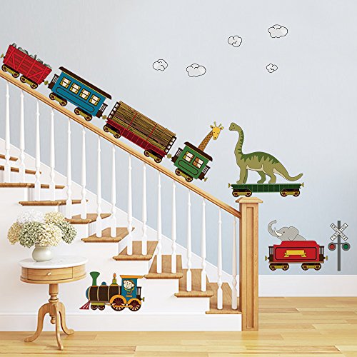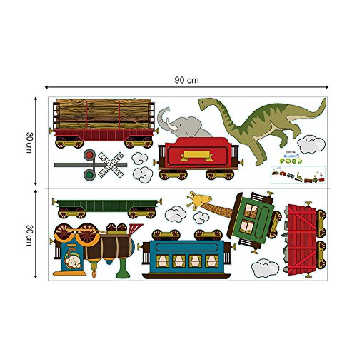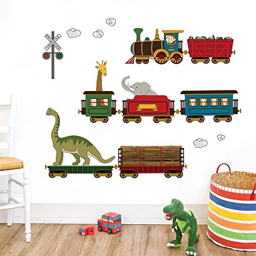 -. Title : DecalMile Animal Train Dinosaur Elephant Giraffe Wall Stickers Removable DIY Wall Decals Murals For Kids Children's Room Nursery
