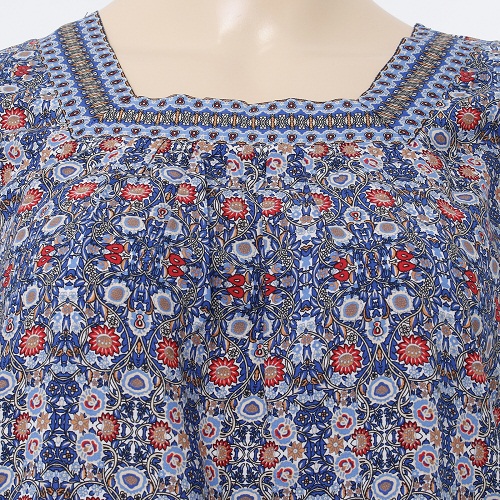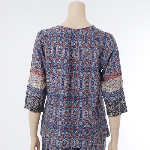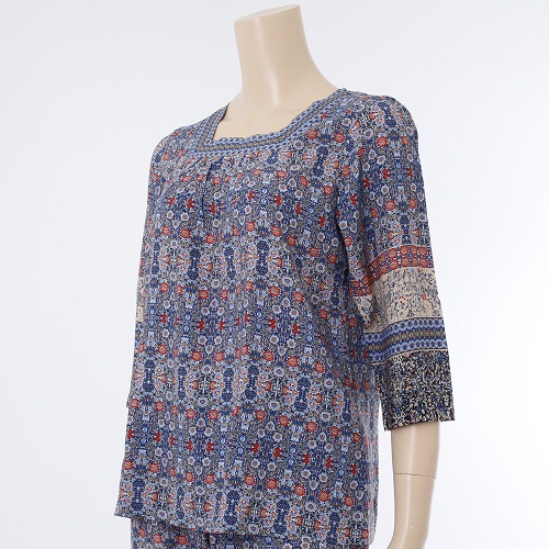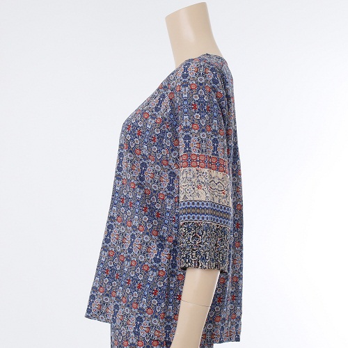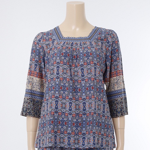 7부 기장 소매로 보더 무늬가 고급스러우며 사각 네크라인이