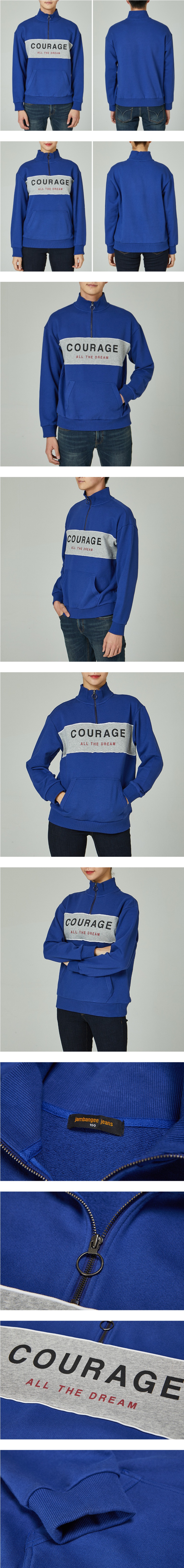 쮸리원단을 사용한 반집업 맨투맨 티셔츠입니다. 컬러 배색과 함께 배색부분에 아트웍으로 포인트를 주어 캐쥬얼하면서 멋스럽게 연출 가능합니다. 반넥 지퍼 디테일로 트렌디하면서도 베이직한 아이템입니다.