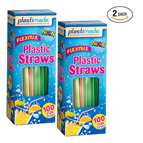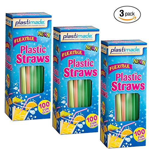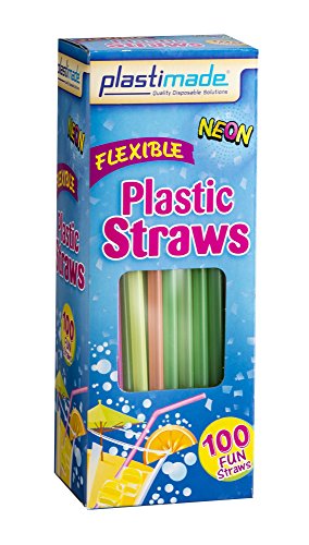 -. Title : Plastimade Flexible 100 Count Disposable Colorful Drinking Straws, Neon (Packaging May Vary)