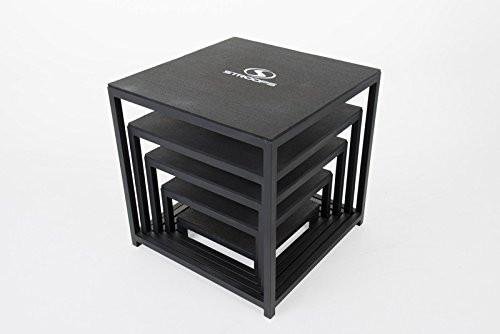 Studio : Stroops Publisher : Stroops Binding : Misc. Product Description The Deluxe PlyoBoxes by Stroops allow for variation in your leg strengthening workouts. Heights varying from 6" to 42", the options are endless. Easily stack the entire set for storage. 0