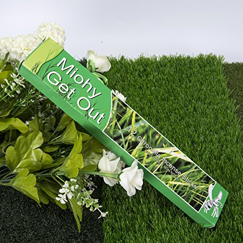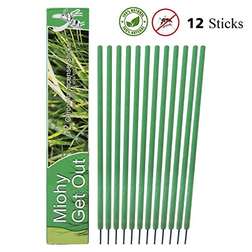 Miohy Mosquito Repellent Incense Sticks - 100% Natural Citronella & Lemongrass - DEET Free & Non-Toxic Bug Repeller for Outdoor Garden Yard & Indoor Burn 2 To 3 Hours (12 Sticks) (Green)