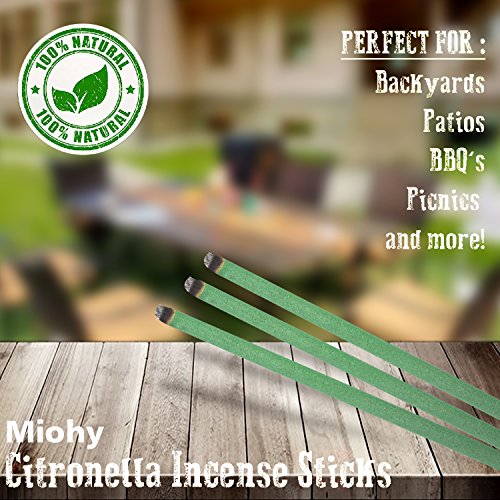- 【SAFE】 – The Miohy Citronella Incense Stick releases a steady flow of mosquito repelling citronella smoke, without the need of keeping the flame lit. Just light sticks and let the flame go out.