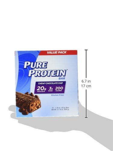 Pure Protein Bars feature the winning combination of high quality protein and great taste. This delicious, gluten free, chewy chocolate chip bar is loaded with 20 grams of protein, and provides vitamins and minerals to help fuel your super busy day.