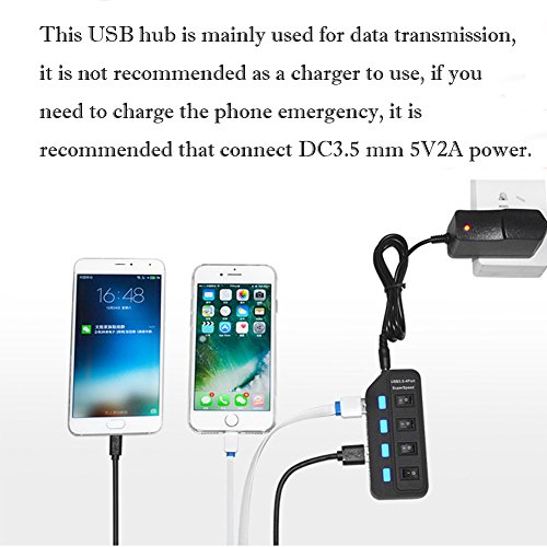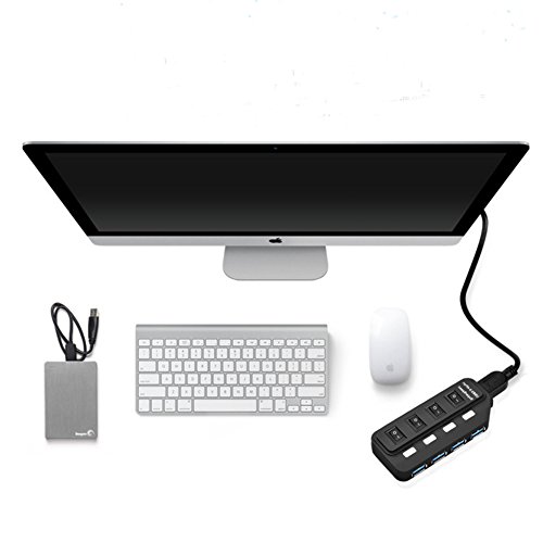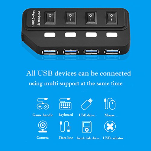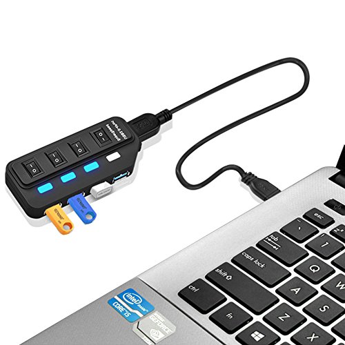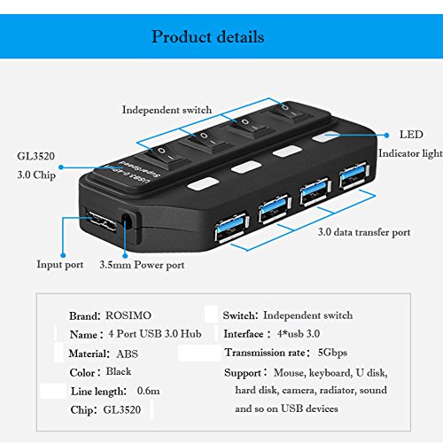 USB 3.0 Hub ROSIMO 4 Port USB Hub Super Speed Data Transfer with 1 Port Micro B Input and ON/OFF Individual Power Switch, Applies to Laptop and Tablet PC