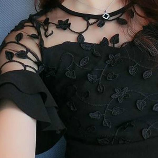 ☆二段のフリル袖がキュートでシースルーレースがセクシーなAラインワンピースです☆