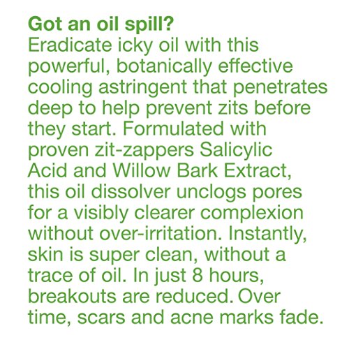 - Feature : Eradicate oil with a powerfully natural, botanically effective, cooling astringent made with max strength 2% salicylic acid / Digs deep to prevent zits with proven zit zapper Salicylic Acid, this oil dissolver unclogs pores for visibly clearer skin / Instantly skin is super clean, without any oil and in 8 hours breakouts are reduced, over time scars and acne marks fade / 100% vegetarian and no animal testing / No parabens, sulfates, phthalates, or artificial colors