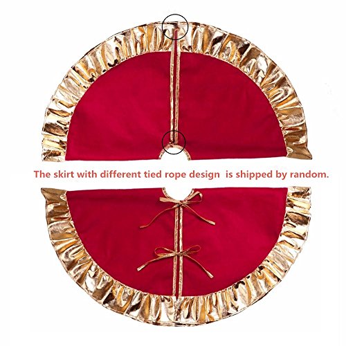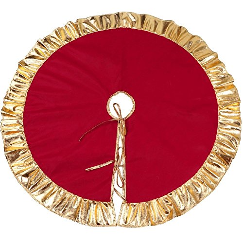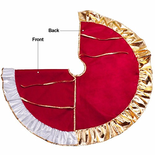 Red Christmas Tree Skirt Mat 36" AQUEOUS Tress Dress for Christmas Holiday Tree Decoration Design with Golden Ruffle Edge Perfect for Any Size Tree (A)