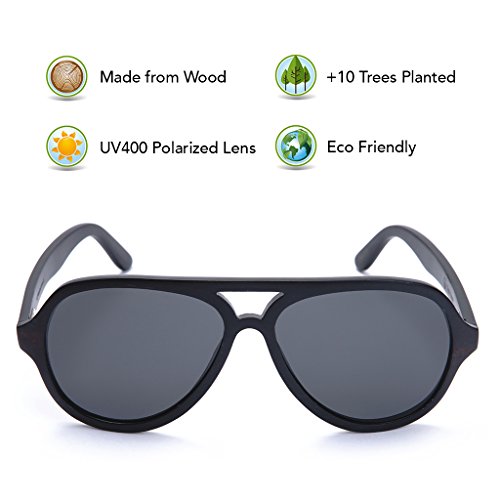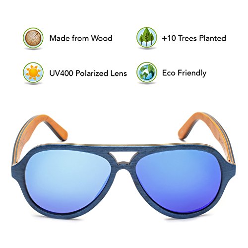 -. Brand : Tree Tribe -. Color : multicoloured -. Department : unisex-adult -. Feature : POLARIZED LENSES - Provide crystal clear vision and anti-glare effect with UV400 protection. 56mm x 47mm lens. / UNIQUE WOODEN FRAMES - Because of the organic nature of wood, each pair has slight variations in the wood grain. / CLASSIC NATURAL STYLE - Classic aviator style with a natural interpretation. Frame size: 146mm front width x 156mm length x 55mm height (5.7" x 6.1" x 2.2") / BAMBOO CASE AND MICROFIBER POUCH - Includes a high quality bamboo case and microfiber cloth pouch to protect and clean your glasses. / WE PLANT TREES - For every pair sold, we plant 10 trees. We've partnered with non-profit tree planting organizations to achieve our mission of planting trees to improve the health of the Earth and local environments. -. ProductGroup : Apparel -. ProductTypeName : EYEWEAR -. Title : Wood Aviator Sunglasses with Polarized Lenses and Bamboo Case