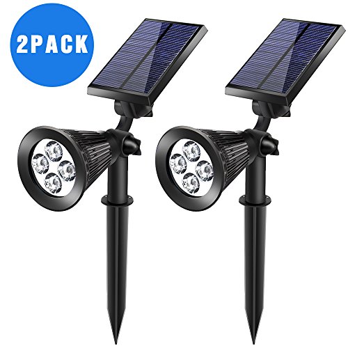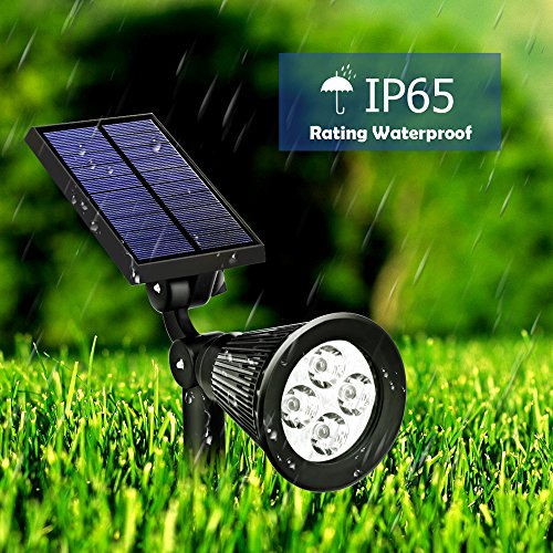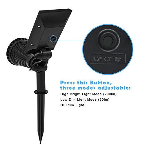 ④【AUTO SWITCH FUNCTION】: Auto on at night / Auto off at sunrise; 2 Level Brightness working modes; Longer Working Time with built-in 1pc 18650# lithium rechargeable battery (1800mAh). Bigger solar panel and monocrystal silicone ensure higher conversion rate, which up to 21%. It supports 6-9 hours working time after fully charged.