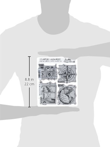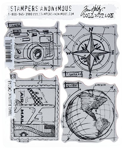 Stampers Anonymous Tim Holtz Cling Rubber Stamp Set, 7 by 8.5-Inch, Travel Blueprint