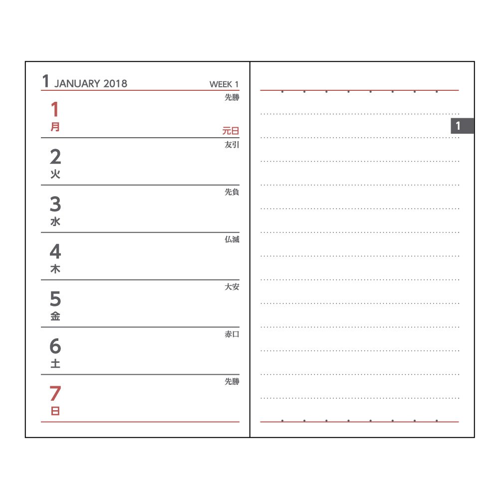 Product name: Daigo notebook appointment Starts in January 2018 Weekly left black E1056