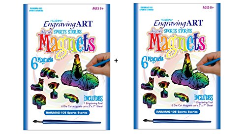 Studio : Royal Langnickel Publisher : Royal Langnickel Binding : Toy Product Description Easy to use engraving art allows you to create fantastic foil artwork. You simply scrape the lines that are preprinted on the board with the provided tool to make your colorful magnet. Each kit contains 6 magnets and one engraving tool.You get two kits. Warning: functional sharp object. Not for children under 3 years. 0