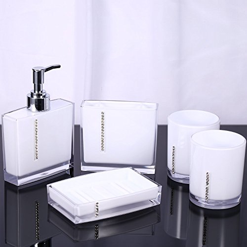 -. Brand : Yosoo -. Feature : Easy to Clean! High gloss, durable, scratch resistant surface / Made out of resin to withstand everyday usage / It brings you luxury, style and comfort at a very affordable price / 5 Piece Bath Set includes 2x tumblers; 1x soap dish; 1x liquid soap dispenser; 1x toothbrush holder / Perfect accessories set for the master bathroom or for guests; looks good in hotels and restaurants -. Label : Yosoo -. Manufacturer : Yosoo -. MPN : YL-Bath-P -. PartNumber : YL-Bath-P -. ProductGroup : Home -. ProductTypeName : HOME_BED_AND_BATH -. Publisher : Yosoo -. Studio : Yosoo -. Title : Yosoo 5 Pcs Bathroom Accessory Set Luxury Bath Vanity Set with Toothbrush Holder Containe Tumble Soap Dish Liquid Soap Lotion Pump Dispenser