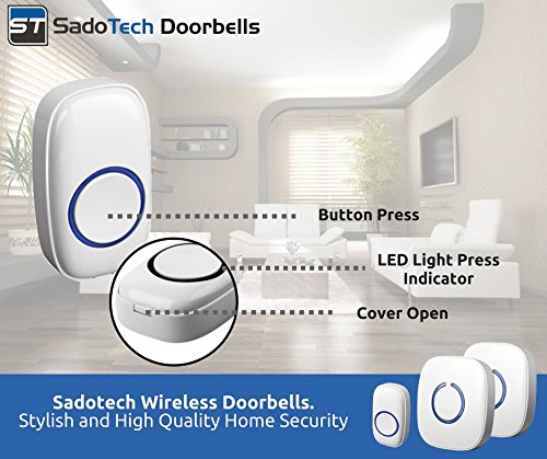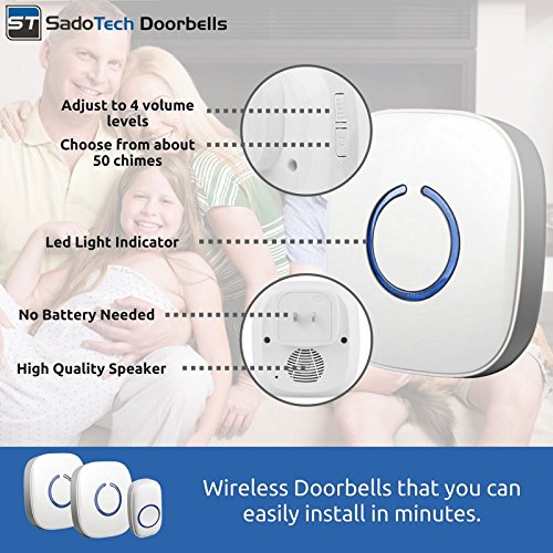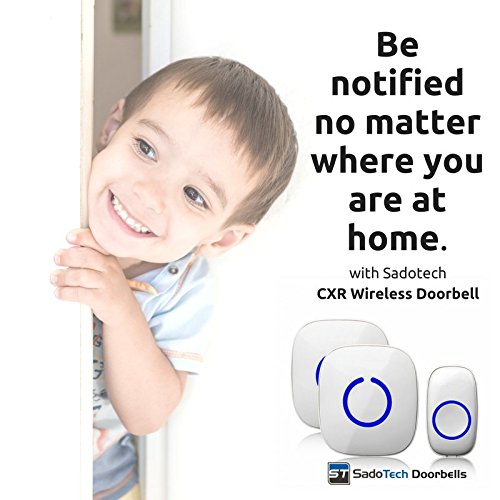 SadoTech Model CXR Wireless Doorbell with 1 Remote Button and 2 Plugin Receivers Operating at over 500-feet Range with Over 50 Chimes, No Batteries Required for Receivers, (White), Fixed Code C Series