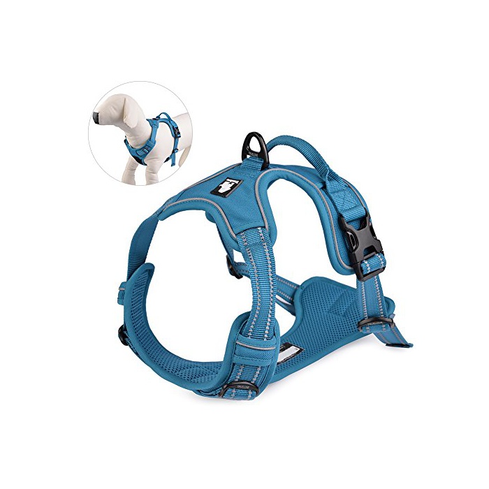 Petacc 견용하네스 견용몸통 돌아가 도그 하네스 3M반사 재료 나일론제 환기성 메쉬 디자인 고나카 대형견 를 향해 여름에 적용 S 블루