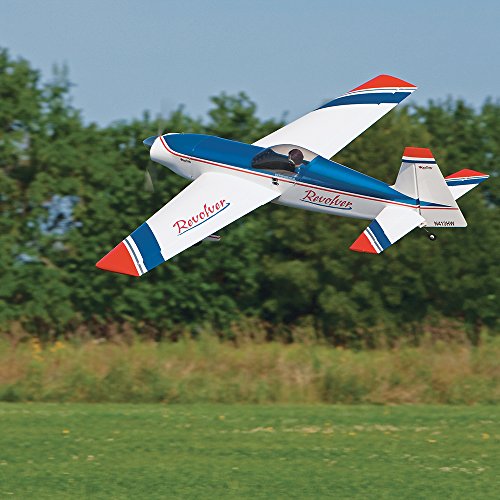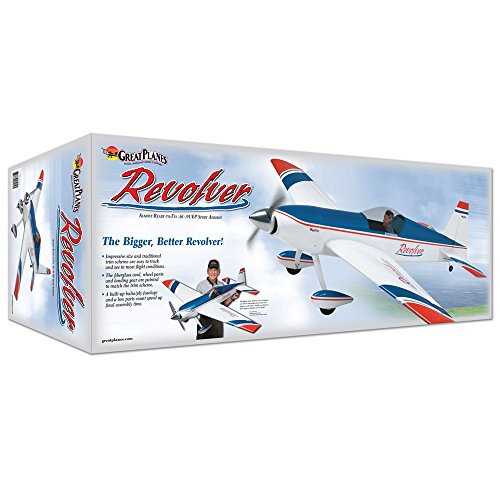 When the original Revolver ARF was released in 2007, its racy, streamlined looks and outstanding aerobatics made it an instant best-seller. Then Great Planes developed something even bigger and better - the 70" span Revolver! It's even more impressive in the air, easier to track and less affected by wind. Capable of everything from simple sport flying to airshow-caliber maneuvers, this Revolver performs equally well with glow or electric power, and either power option installs with virtually "foolproof" ease. The fiberglass cowl, wheel pants and landing gear are painted to match the eye-catching MonoKote trim scheme. A pilot figure and aluminum spinner are included. Features: - The impressive size and traditional trim scheme make the Revolver 70" easy to track and see in most flight conditions.
