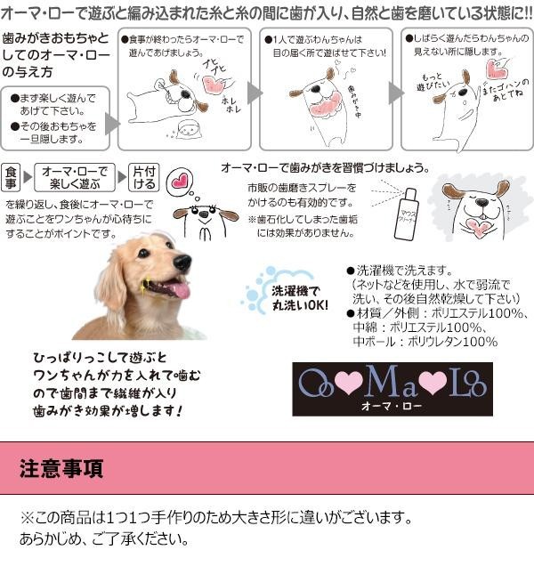 | トルコの手作りおもちゃ、オーマ・ローで遊ぶと編み込まれた糸と糸の間にワンちゃんの歯が入り、自然と歯を磨いている状態に!! |