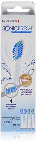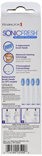 ReleaseDate : 2015-05-15 Studio : Remington Products Publisher : Remington Products Binding : Health and Beauty Product Description Always have a quality brush on hand with the Remington SonicFresh Replacement Pack. These four brushes supply the cleaning power of up to 31,000 sonic pulses per minute and are easy to replace and install with a simple twist and snap. Plus, the three colored rings allow multiple people to use the brush handle while keeping their own brushing heads separate and clean. 0