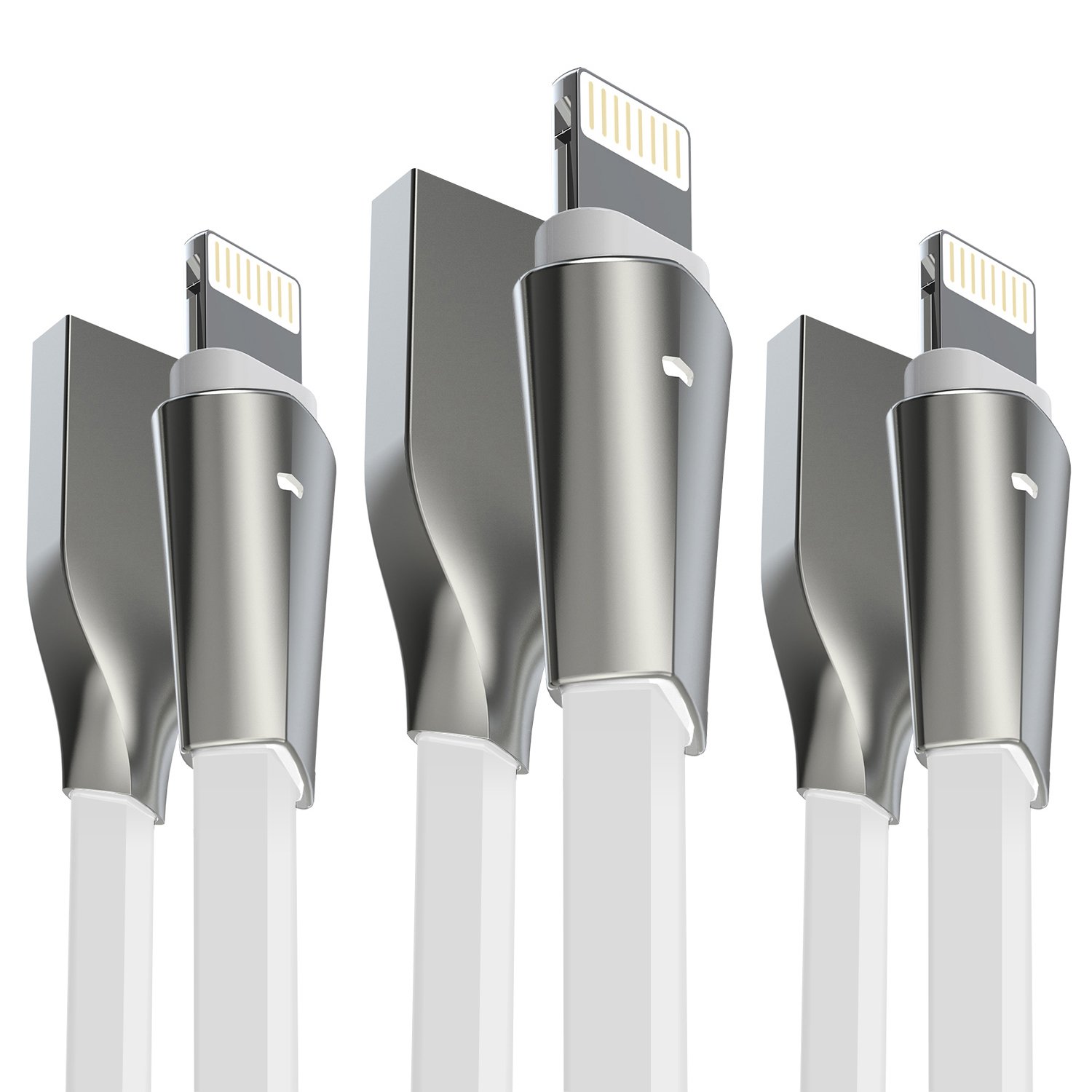 By designing a durable zinc alloy housing and a flat lightening cable not tangled, it improves durability and convenience.