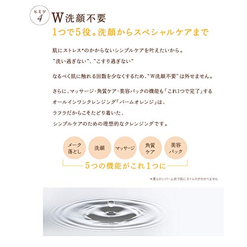 ダブル洗顔不要で、メーク落とし・洗顔・温感マッサージ・角質ケア・美容パックの5つの機能がこれ1つで完了。濃厚なバームがメークや古い角質を落とし、毛穴汚れを吸着。さらに、アロマの温感マッサージで、もっちり透明美肌へ。保湿成分コラーゲン・ヒアルロン酸・ローヤルゼリー配合。まるで美容液を使ったあとのようなふっくら柔らかな洗い上がりです。