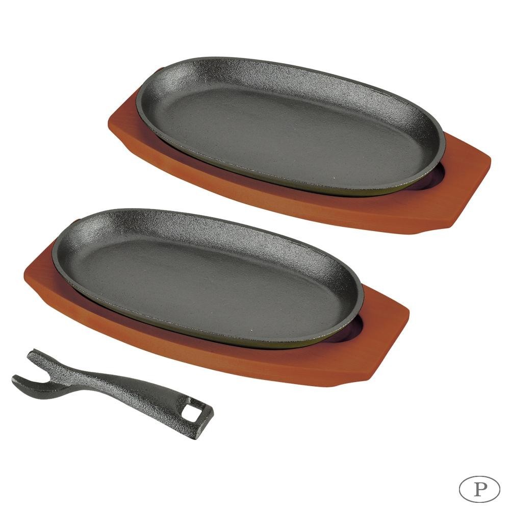 | 素材・材質 | 【表面加工】 皿・ハンドル:油焼き(焼付け塗装)、木製プレート:ポリエステル樹脂塗装 【材料の種類】 皿・ハンドル:鉄鋳物、木製プレート:天然木 |