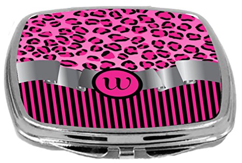 Rikki Knight Compact Mirror, Letter w Initial Hot Pink Leopard Stripes Monogram