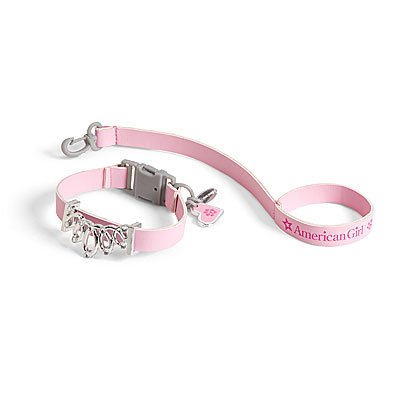 Studio : American Girl Publisher : American Girl Binding : Toy Product Description Silvery charms and rhinestones will make any pet feel like a princess. The pink faux-leather collar secures with a buckle-clip closure, and the leash has a loop that fits over a doll's hand. Set includes a heart charm and a logo charm to decorate her pet's collar. Fits pets from the "My American Girl" series Ages 8 0