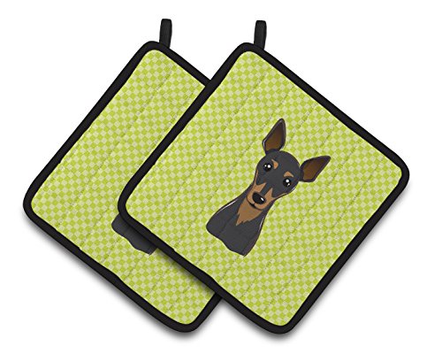 Caroline's Treasures Checkerboard Lime green Min Pin Pair of Pot Holders BB1302PTHD, 7.5HX7.5W, Multicolor