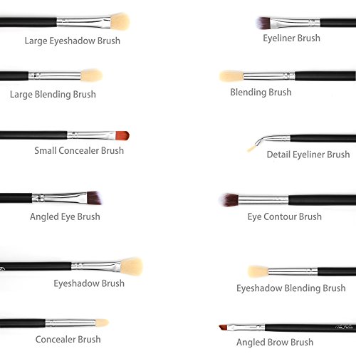 - MULTIFUNCTIONAL FOR EYE MAKEUP --- Complete eye brush set meets all your need to create the perfect smokey eye look or any eye makeup application. This essential eye shadow makeup brush set includes eyebrow brush, eyeshadow brush, blending brush, concealer brush which is applied for defining, blending, shading, contouring, highlighting and finishing.