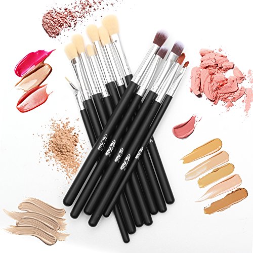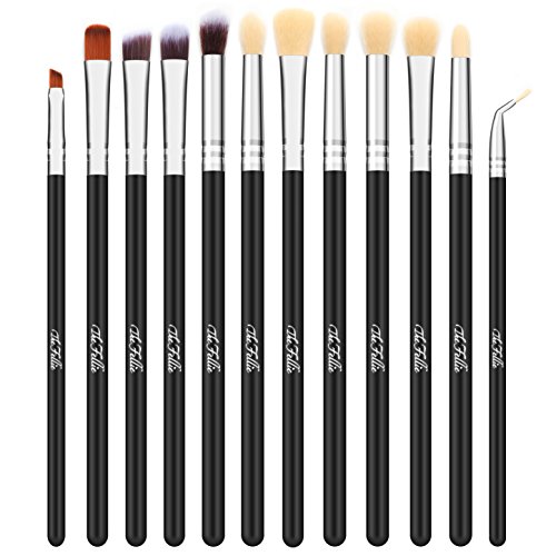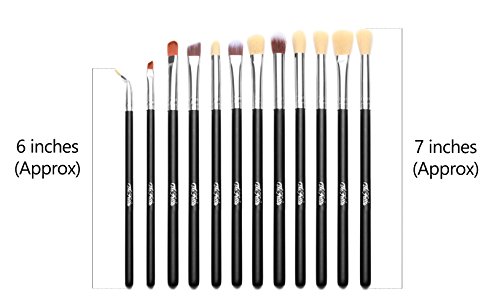 TheFellie Eye Makeup Brushes, Eyeshadow Blending Makeup Brush Set Professional Concealer Eyeliner Eyebrow Cosmetic Brushes ( Black Silver, 12 Pieces )