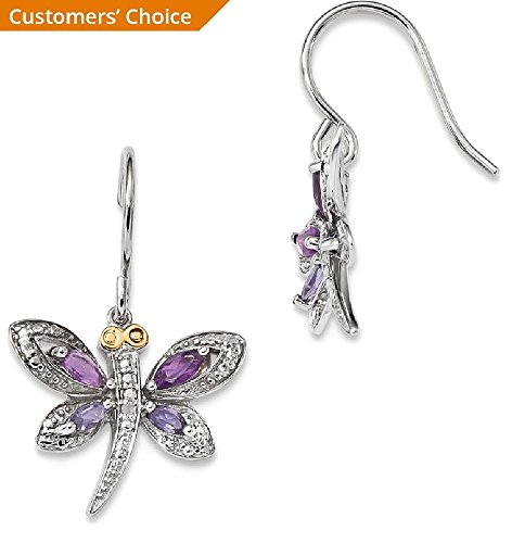 ICECARATS DESIGNER JEWELRY 925 STERLING SILVER 14K PURPLE AMETHYST BLUE IOLITE DIAMOND DRAGONFLY DROP DANGLE CHANDELIER EARRINGS