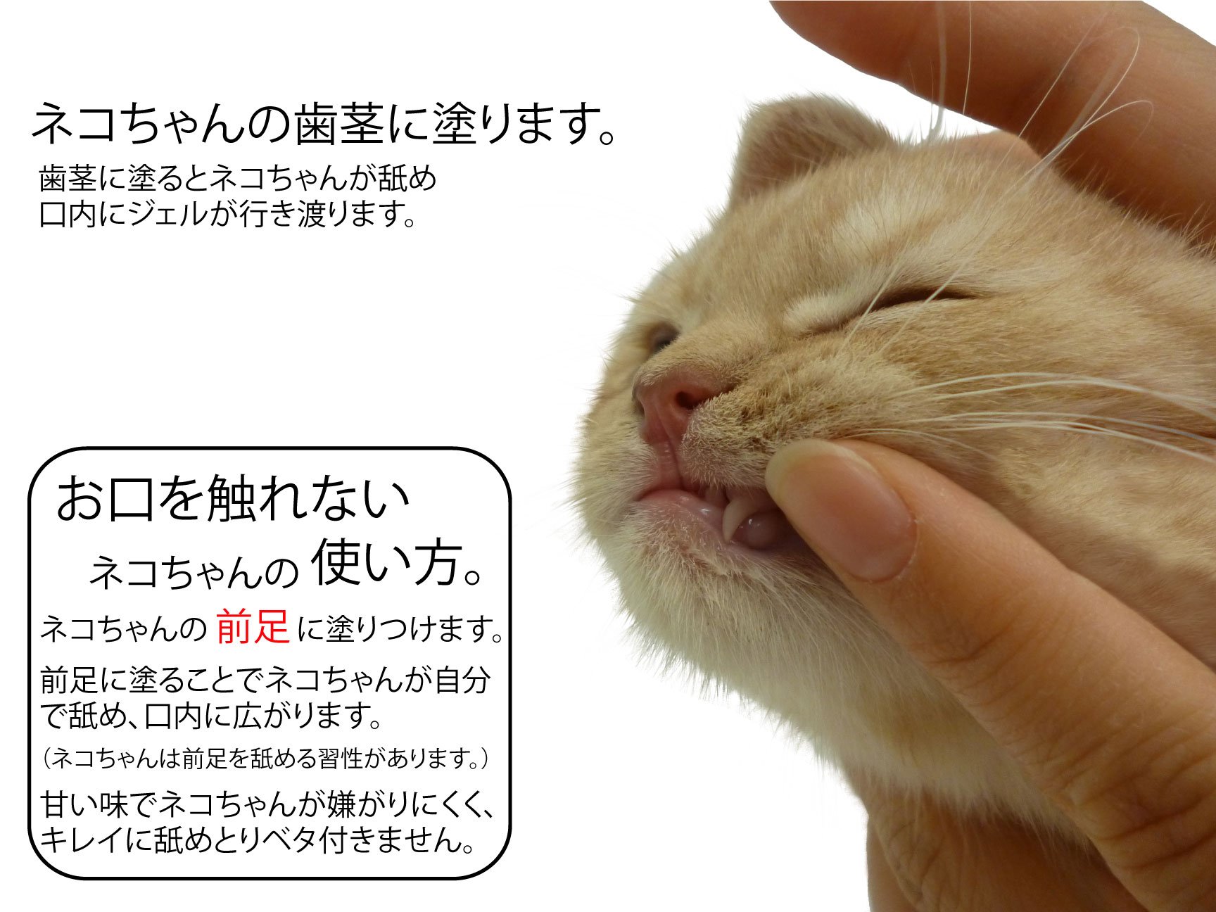 Pet itself licks by painting on the front side of the tooth, it mixes with saliva and it reaches every corner of your mouth.