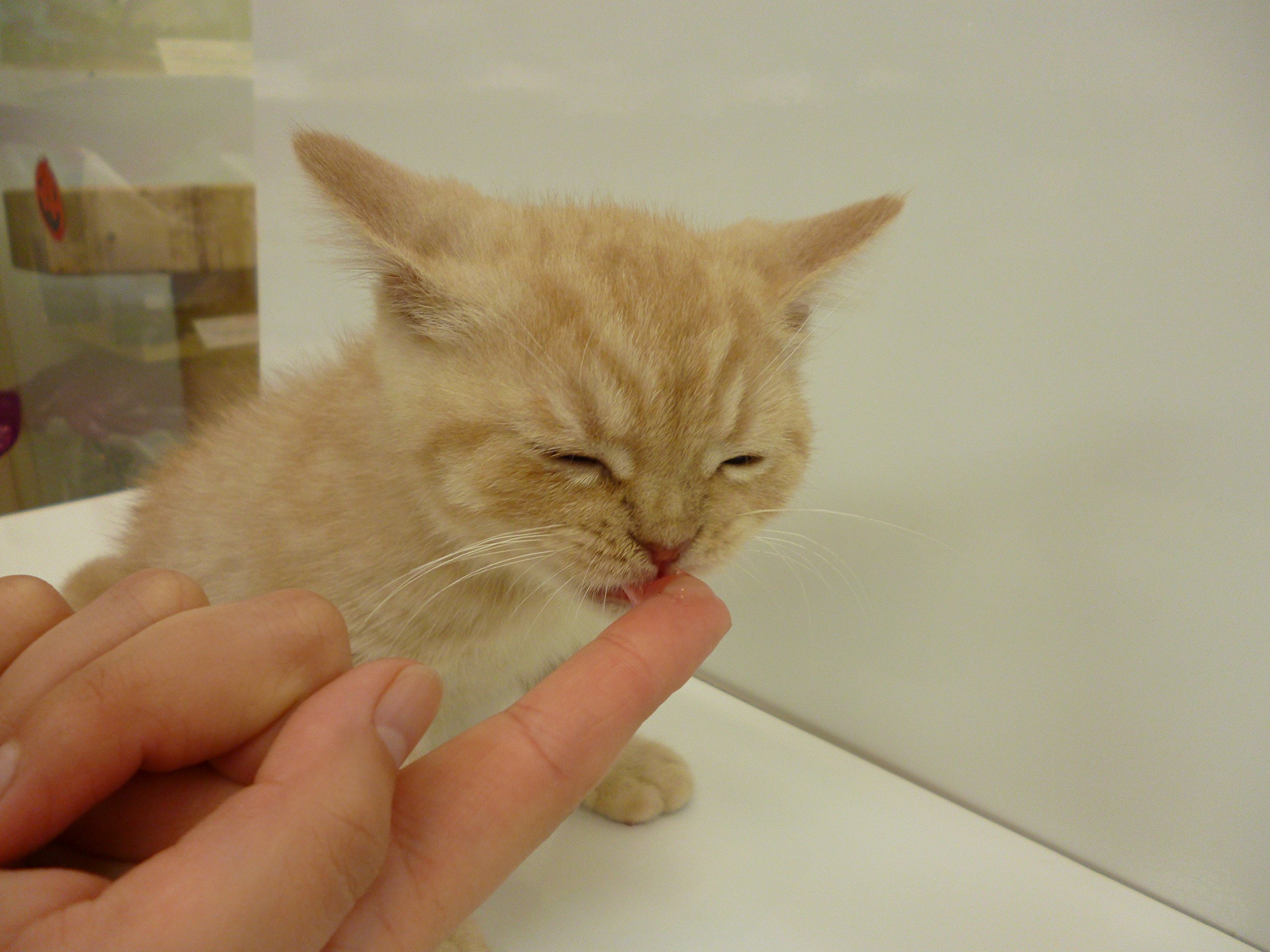 In the case of a cat, I will paint it on my forefoot and let me lick it.