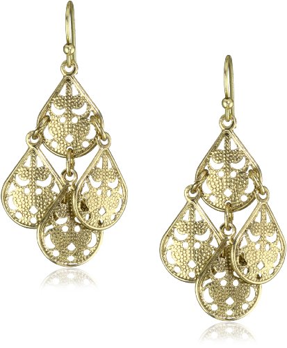 Metallic chandelier earrings composed of textured teardrop-shape pendants with cutouts