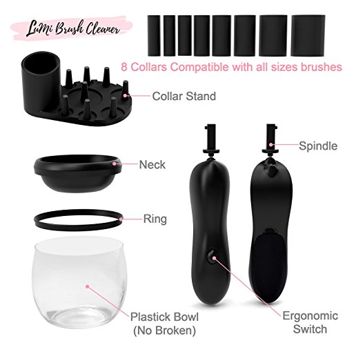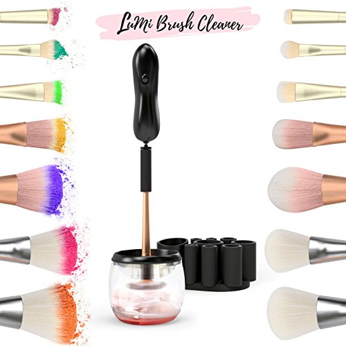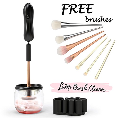 - FREE SET OF BRUSHES WITH EVERY PURCHASE - Save money and get extra value! Comes with a FREE set of beautiful makeup brushes. Your free set of cosmetic beauty brushes will instantly become your favorite, with its chic design and high quality. The amazing Lumi cleaner comes with 8 silicone adapters for each size of all of your brushes! We’ve got you fully covered. Also includes a plastic bowl with a splash guard ring, and storage for your adapters and spinner!