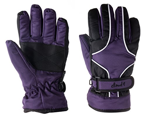 Product Description Cloud 9 Kids Cold Weather Waterproof Thinsulate Ski Gloves. Gloves equipped with 3M Thinsulate insulation and waterproof lining, great for cold temperatures and staying dry in wet or snowy conditions. PU leather with best grips and nice feeling. Adjustable wrist strap closure for a customizable fit to each hand. 0
