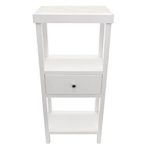 Three Hands Wood Cabinet with Marble Top Home Décor Accent, White